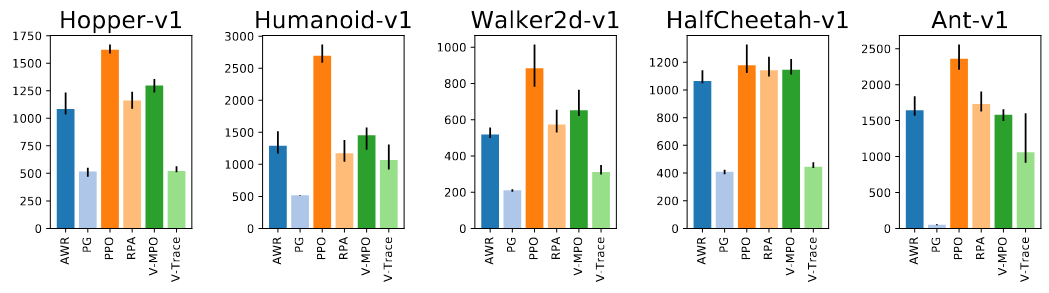- Continuous control tasks in Mujoco